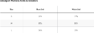 Size Bust (in) Waist (in)
