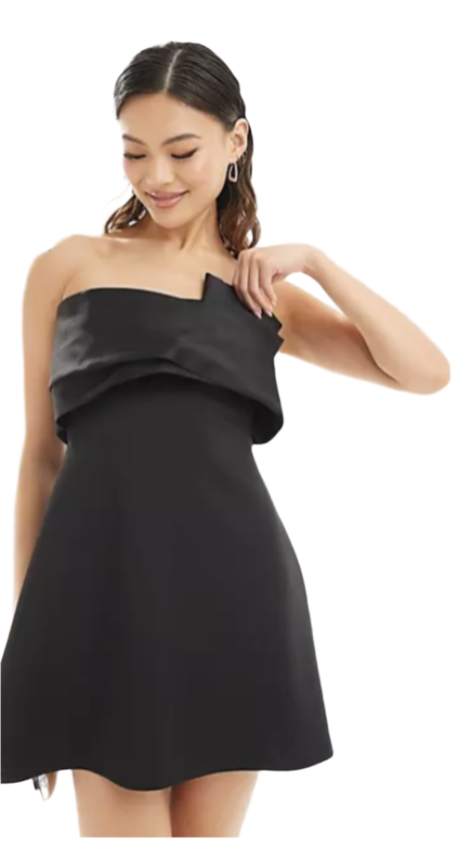 We are loving this black mini dress. In a bandeau style pair with heels for a stylish look this summer.
